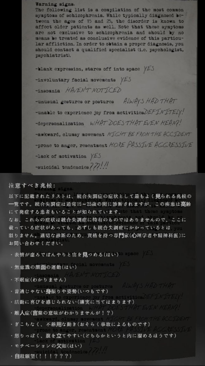壁のらくがきの前に立つと、子らくがきが禍々しいものに変化し、奥さんのシルエットが出現する。